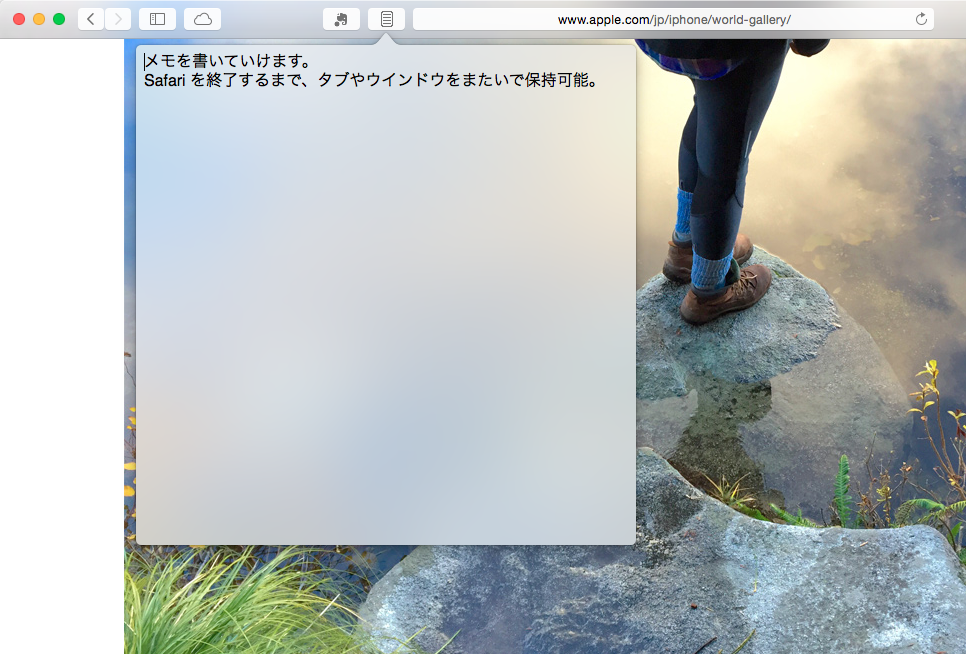 注:Safari を終了した時点でメモはリセットされます。ご了承ください。
