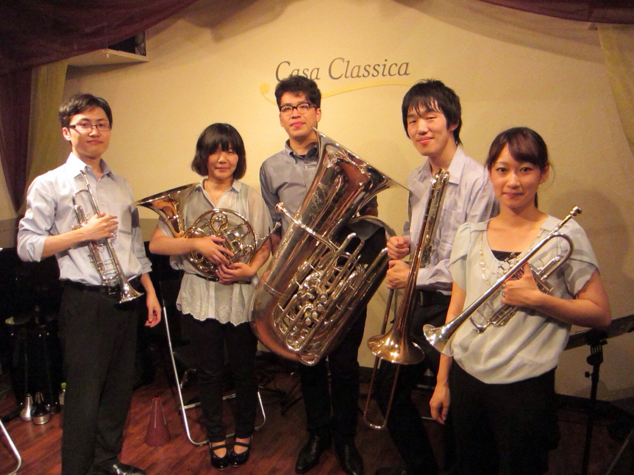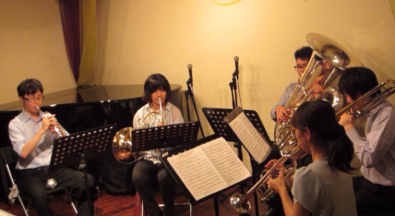 金管五重奏とは、金管楽器5本で演奏されるアンサンブルの事です。トランペット2本、ホルン、トロンボーン、チューバが基本になってます。