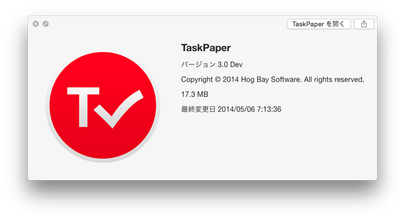 Mac App Store に TaskPaper はあるんですが、有料であり、最新の OS X Yosemite では満足に動かないという情報を得て、公式サイトをぐるぐるしているうちに、ベータ版があることを発見してダウンロード。ただですが、当然何が起こっても文句を言う資格はありません。以下がDLサイト。