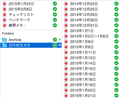 過去の日付のファイルは別フォルダへ。テキストファイルなので場所をとることもなく、とても気持ち良く過ごしています。