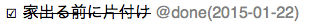 「@done」部分をクリックすることができます。すると、完了した項目のみを表示してくれます。というか、操作自体は⌘Dのショートカットで行います。小さなボックスなんかクリックしてられない。