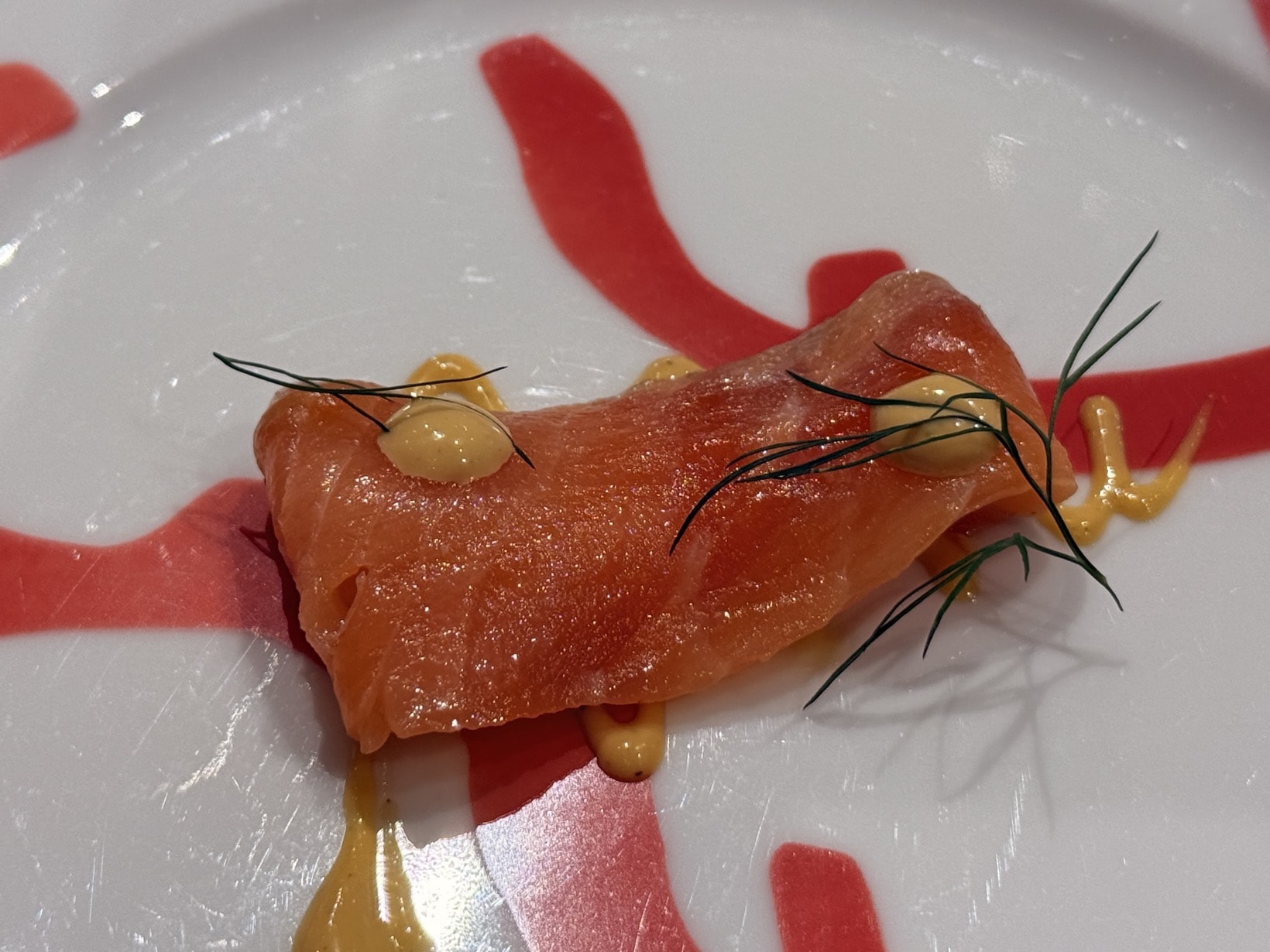 普段見かけるサーモンといえば北欧かチリ産だが、こちらは福井産。種や環境が違うのか、身がしっかりしている。ソースも素晴らしく、主張せず完全にサーモンと一体化しており、風味を引き出しているように感じられた。