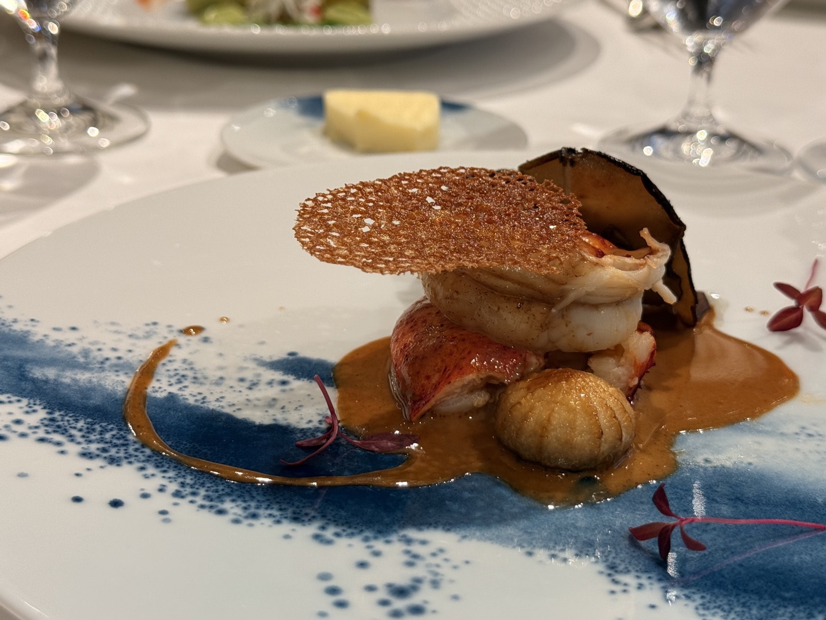 オマール海老は 3 つの部位ごとに分けられており、食感の違いを楽しめた。