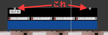 - option + フェードイン・アウトハンドルをドラッグ…通常は動画のフェードイン・フェードアウトハンドルをドラッグすると、開始と終了が同時に動きますが、option キーを押しながら動かすと個別に設定できます。痒い所に手が届く。