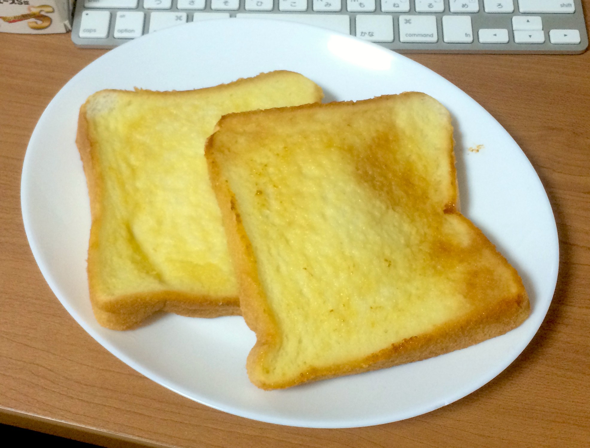 プリンの気配が強いのではと思いきや、とても美味しいです。フレンチトーストです。柔らかいです。フワトロです。ちょっと厚めに塗ればプリプリです。少なくとも今回、(色的に)中まで染み込みはしなかったけど、パサパサな雰囲気は全然なくて大変良いです。